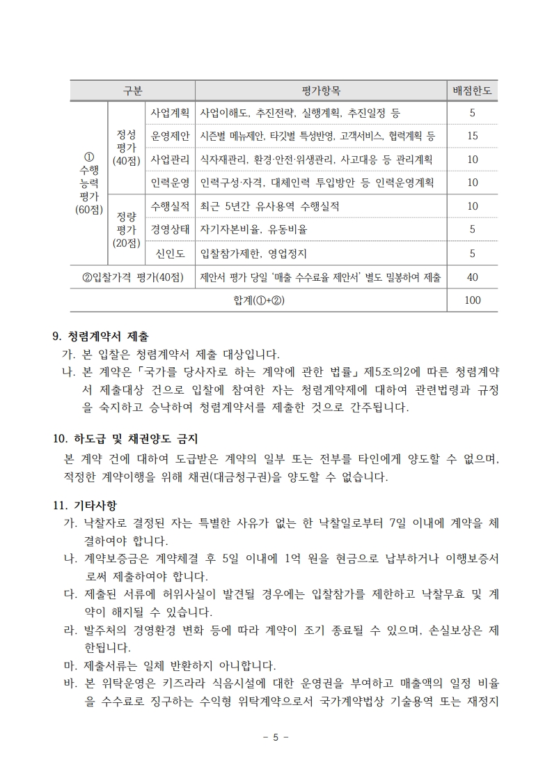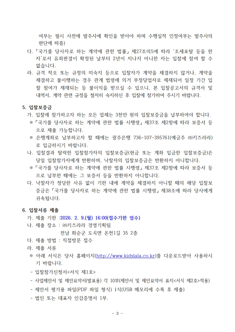 키즈라라 어린이 테마파크 식음시설 위탁 용역